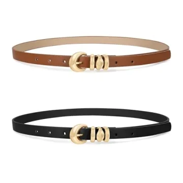 Show more The XZQTIVE 2 Pack Women's Skinny Leather Belts is an essential fashion accessory designed for the modern woman. These beautifully crafted belts, made from high-quality PU leather, bring both style and durability to the forefront. With their slim profile measuring 0.71 inches (1.8 cm), these belts effortlessly flatten against your waist, providing a chic finish to your look. Available in classic black and brown, they seamlessly transition from day to night, making them a versatile addition to any wardrobe.