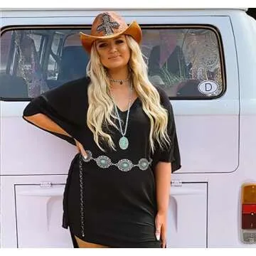 XZQTIVE Women Boho Chain Belts For Dresses Jeans Western Cowgirl Waist Links Belt Adjustable Metal Concho Belt