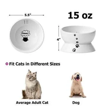 Y YHY Elevated Cat Food Bowl, Raised Pet Food and Water Bowl for Cat and Small Dog, Tilted Ceramic Water Bowl No Spill,15oz, Dishwasher Safe
