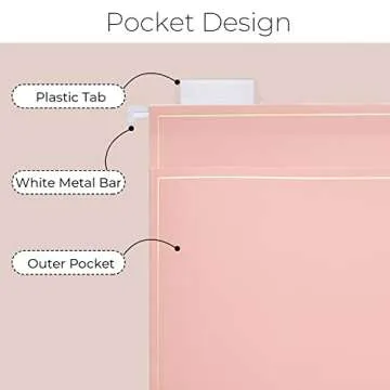 Y YOMA 6 Pack Rose Gold Hanging File Folders with Pocket Letter Size Decorative File Folder Cute Pretty Hanging Folder for Office Home School with 1/5-Cut Adjustable Tabs, Outer Storage Pockets