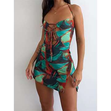 Y2K Dress for Women Sexy Sleeveless Printed Bodycon Mini Dresses Clothing 90s Vintage (B-Multicolor, S)