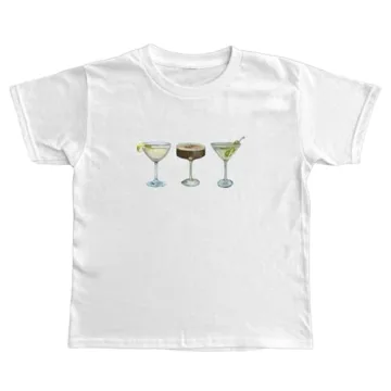This graphic top features charming prints of fruity drinks, beautifully displayed in a slim fit that enhances your silhouette. The trendy and colorful design strikes a balance between playful and chic, giving you the versatility to dress it up or down. Easygoing yet stylish, you can pair this cropped gem with high-waisted jeans for a day-out look, or throw it on over a skirt for a fun night out.