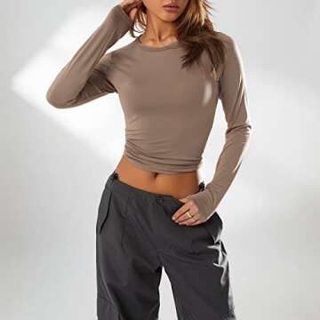 Y2K Long Sleeve Top for Women Fairy Grunge Tee Shirt Fashion Solid Slim Fit Blouse Tops(F-Brown,S)