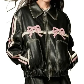 Show moreIntroducing the Y2K PU Leather Jacket, an exquisite blend of modern style and vintage charm that embodies the essence of the early 2000s fashion trend. Crafted from high-quality faux leather, this handmade distressed jacket features an eye-catching delicate pink and black printed bow at the front, transforming a classic silhouette into a stunning romantic piece. The jacket's unique aging process not only highlights its individuality but also ensures that every piece stands out as a work of art. This versatile jacket is designed to keep you chic and trendy throughout the autumn season.
