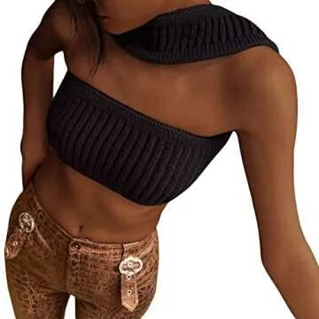 Show moreIntroducing the Y2k Sleeveless Ribbed Knit Crop Tops, a must-have addition to every young fashionista's wardrobe. Crafted from premium quality polyester, this stylish top promises a smooth and soft touch that feels great against your skin. The fabric is not just comfortable but also offers the perfect amount of stretch that enhances your silhouette, making it ideal for various occasions. Featuring a chic slim turtleneck pullover style, this crop top embodies a blend of elegance and edginess with its off-shoulder and backless design. The irregular cut-out shape adds a unique twist, making it a standout piece that's simple yet incredibly versatile.