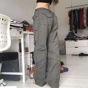 Y2k Vintage Cargo Jeans with Stitching Pockets Indie Aesthetics Low Waist Pants 2000s Baggy Flare Denim Trousers Autumn (Gray, Medium)