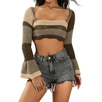 Unlike other standard crop tops, our Y2k Women Long Sleeve Crop Top elevates your outfit with its unique crochet design and color block aesthetics that stand out in any crowd. While many tops focus solely on comfort, ours takes it a notch higher by integrating fashion-forward elements that resonate with today's trends. You’ll find that while other products may offer plain or rigid options, this one seamlessly blends comfort, versatility, and style, all at an accessible price point.