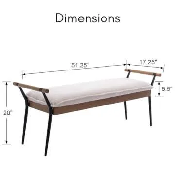 Ya-Home Mid-Century Modern Bench, Upholstered Chenille Fabric Entryway Bench with Armrest Metal Legs Ottoman for Bedroom Living Room, White
