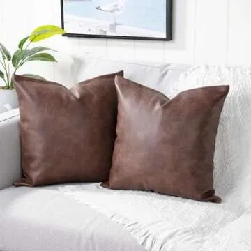 Yaertun Set of 2 Faux Leather Decorative Throw Pillow Covers Modern Solid Outdoor Cushion Cases Luxury Pillowcases for Couch Sofa Bed 26x26 Inches Dark Brown