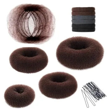 Show moreElevate your hairstyling game with the YaFex Hair Bun Maker Kit, a must-have for anyone who loves elegant and stylish hairdos. This comprehensive All-in-One Hair Bun Styling Kit comes with a variety of tools designed to make creating stunning buns an absolute breeze. The set includes four sizes of doughnut bun makers (one large, two medium, and one small), making it the perfect choice for girls and women of all ages. But that’s not all—this kit also features 10 hair nets, 6 elastic hair ties, and 20 bobby pins, ensuring that you have every essential item at your fingertips to achieve an exquisite look swiftly and effortlessly.
