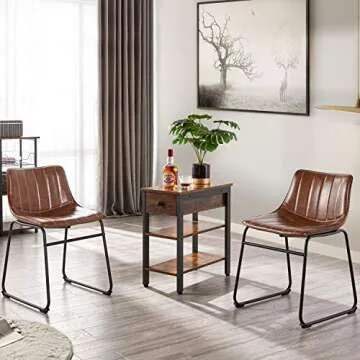 Show moreIntroducing the Yaheetech 18" PU Leather Dining Chairs, a perfect fusion of comfort and style designed for your indoor and outdoor spaces. These armless bar stools come adorned with a relaxing backrest, allowing for a supportive experience as you enjoy meals, drinks, or casual conversations. The intelligently crafted armless structure adapts seamlessly to any body shape, making it a versatile choice for everyone in your family. Their stunning brown PU leather upholstery coupled with a sleek metal frame enhances not only the aesthetics of your dining setting but also promises maximum comfort and durability.