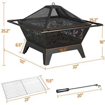 Show moreIntroducing the Yaheetech 32in Outdoor Fire Pit, a perfect blend of functionality and aesthetics for your outdoor experiences! Made with top-quality metal and designed to withstand high temperatures, this fire pit promises to be your go-to companion for backyard gatherings or camping adventures. Its thoughtfully designed ventilation and spark screen ensure safety while allowing you to enjoy the mesmerizing glow of the fire. With well-crafted star patterns and a size that suits any medium-sized space, it not only heats up your evenings but also enhances the beauty of your garden or patio.