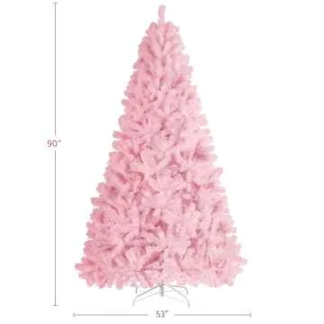 Yaheetech 7.5ft Pink Artificial Christmas Pine Tree Seasonal Holiday Carnival Home Party Decoration for Home, Office, Party Decoration Indoor Outdoor with 1539 Branch Tips and Foldable Stand