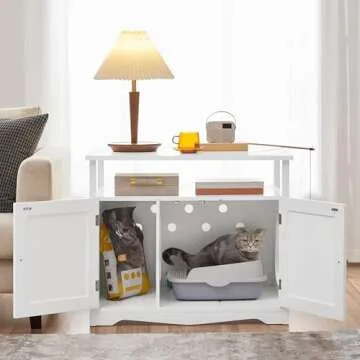 Yaheetech Cat Litter Box Enclosure, Litter Box Furniture Hidden with Removable Divider, Indoor Cat House with Storage Shelf, Wooden Cat Washroom Pet Side Table Storage Cabinet