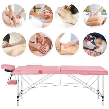 Yaheetech Massage Tables Portable Massage Bed Aluminium Height Adjustable Facial Salon Tattoo Bed with Non-Woven Bag, 24 inch Width Pink