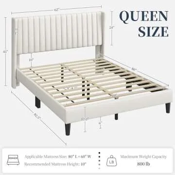 Show moreTransform your bedroom into a stylish sanctuary with the Yaheetech Queen Bed Frame Upholstered Platform Bed. This exquisite bed frame combines classic design elements with functional features to offer a perfect blend of aesthetics and practicality. Crafted with a stunning geometric wing side design, a plush channel headboard, and soft, durable skin-friendly linen fabric, this bed frame is not just a place to sleep; it is a centerpiece that enhances your room's décor. Whether you're redecorating or setting up a new space, this bed frame promises to elevate your bedroom's ambiance while ensuring maximum comfort and support.