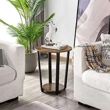 Its rustic brown finish, complemented by a sophisticated black metal frame, adds a touch of vintage elegance to your home. This piece fits beautifully in a variety of settings—from your cozy living room to your chic office space. With its aesthetic appeal and practical benefits, this end table is a must-have addition to any modern home.