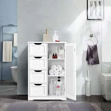 Yaheetech Wooden Floor Cabinet, Side Storage Organizer with 4 Drawers and 1 Cupboard, Freestanding Entryway Storage Unit Console Table, Bathroom Furniture Home Decor, White