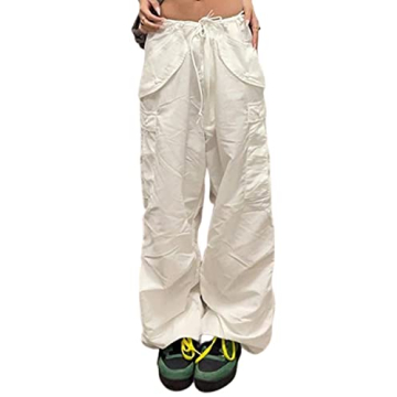 YAHUIUL Women's Apricot Parachute Pants - Baggy Cargo Joggers for Y2K Style