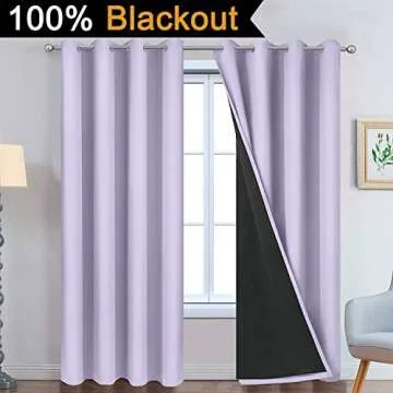 Yakamok 2 Thick Layers 100% Completely Blackout Window Curtains,Thermal Insulated Noise Reducing Drapes for Girl's Bedroom(52Wx84L, Lilac, 2 Panels)