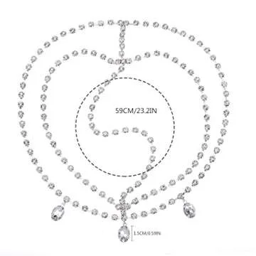 Show more Introducing the Yalice Layered Head Chain, a mesmerizing piece of hair jewelry that adds a touch of sparkle and elegance to any outfit. Crafted with an exquisite array of rhinestones and crystals, this headpiece is designed to hang gracefully off the front of your forehead, creating a stunning visual effect that is sure to leave a lasting impression. The unique center pendant draws attention to your beauty, while the adjustable chains allow for a customized fit that ensures comfort and style for every wearer. Perfectly suited for brides, this headpiece is more than just a wedding accessory; it's a bold statement of sophistication and grace that can seamlessly transition into various occasions.