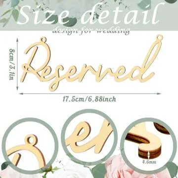Show moreIntroducing the **Yalikop 12 Pcs Reserved Signs for Wedding Chairs**, the perfect solution for elegantly designating reserved seating at your special events. This exquisite package includes twelve beautifully crafted reserved signs made from high-quality, lightweight wood, paired with twelve durable hanging ropes. Each sign measures approximately 6.88 x 3.1 inches, making them prominently visible for guests while blending seamlessly with your decor. Their rustic and vintage aesthetic adds a charming touch to any setting, ensuring that your guests are sure to be impressed. With a focus on dependability, these signs are designed for both functionality and style, making them an essential item for your wedding or event. Less