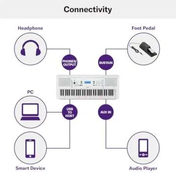 The Keys to Success lesson mode provides a structured approach to mastering popular songs by breaking down complex pieces into manageable steps tailored for your individual pace. Likewise, the Touch Tutor mode tracks the force of your keystrokes, making learning about musical dynamics not just informative but also fun and interactive. Whether your passion lies in pop, jazz, or any genre in between, the innovative Smart Chord feature empowers you to create impressive chords with minimal effort, effortlessly transitioning from simple triads to intricate jazz harmonies.