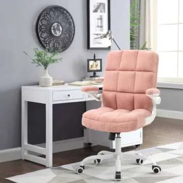 YAMASORO Pink Office Chair with Flip-Up Arms | Stylish Teddy Velvet Design