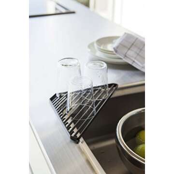 Yamazaki Home Corner Sink Steel | Drainer Tray, One Size, Black