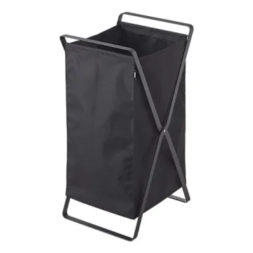 Yamazaki Home Laundry Basket - Foldable Storage Hamper Organizer Steel One Size Black