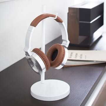 Yamazaki Home Office Desk Headphone Stand - Headset Holder - Round Base, Round, Steel
