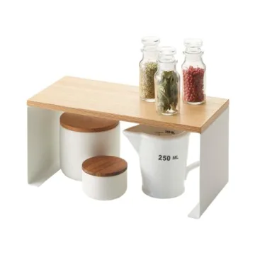 Show moreIntroducing the Yamazaki Home Wood-Top Stackable Kitchen Rack, a perfect blend of functionality and elegance for modern living. Measuring 5.51 x 12.01 x 5.71 inches and weighing only 1.76 pounds, this sleek rack is designed to optimize your kitchen storage, featuring a stunning ash wood top that adds warmth to your home decor. Crafted with a durable powder-coated steel frame, the minimalist design not only complements any interior but also stands the test of time by holding up to 8.8 pounds of your essential items, from spices to oils.