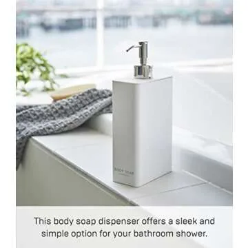 Show moreIntroducing the Yamazaki Tower Body Soap Dispenser in a crisp white rectangular design, a stylish and functional addition to your bathroom or shower space. Measuring 4.33 x 2.17 x 9.25 inches and weighing just 0.64 pounds, this sleek body soap dispenser is engineered to fit seamlessly into modern home aesthetics while enhancing your daily routine. Crafted from high-quality ABS resin and accented with rust-resistant stainless steel, it beautifully combines durability with elegance, ensuring that it remains a staple in your home for years to come.