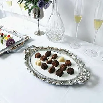 Yamfurga Oval Decorative Mirror Tray, French Style Flower Frame, Makeup Organizer, Jewelry Organizer, Serving Tray, 9.8"x 14.6", Golden Silver
