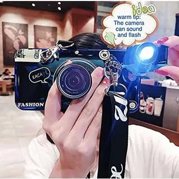 yandi Compatible iPhone 13 Pro Max Case (6.7 inch) Lanyard, Cute iPhone case Blue Ray Camera Style Phone Cover Key Chain, Bling Lightweight Soft TPU Case Cover (Blue, iPhone 13 Pro Max)