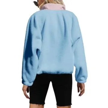 Yanekop Fleece Pullover Women Sherpa Jacket - Cozy Button Down Sweatshirt in Light Blue Purple