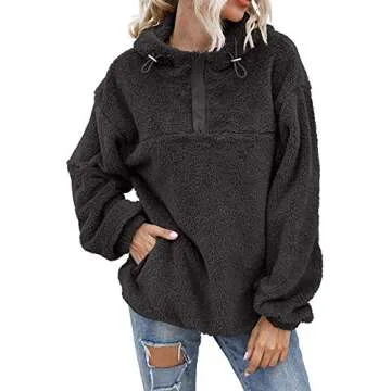 Yanekop Womens Athletic Hoodies Fuzzy Fleece Sweatshirt Sherpa Oversized Plaid Pullover With Pockets(01 Dark Grey,S)
