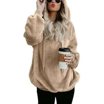 Show moreIntroducing the Yanekop Womens Hoodies Sherpa Pullover Sweater, where comfort meets style in the coziest way possible. Made from an ultra-soft blend of 95% polyester and 5% spandex, this delightful hoodie ensures you stay warm and snug throughout the day. Its unique fuzzy fleece construction not only feels luxurious against the skin but also guarantees warmth during chilly winter days. With a trendy quarter zip design, this pullover hoodie offers versatility in styling and ease of wear, making it a staple piece in your wardrobe. Perfectly oversized, you can embrace casual chicness while enjoying unparalleled comfort.