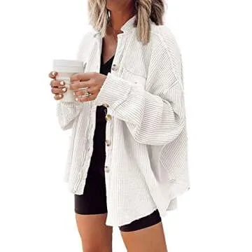 Show more The perfect addition to your wardrobe, this waffle button-down shirt for women is an embodiment of style and comfort, tailored for the chilly days you crave. Crafted from a comfortable and skin-friendly fabric, this shirt is designed to keep you cozy while ensuring you look cute and fashionable. Its versatile nature makes it an easy match for a variety of outfits, allowing you to express your unique style effortlessly.