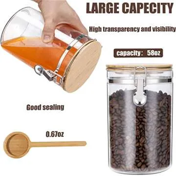 Yangbaga 2Pcs Coffee Sugar Canisters with Shelf, 58OZ Plastics Storage Containers for Ground Coffee Bean Storage with Lid Locking Clamp&Coffee Scoop, Food Storage Jar for Kitchen