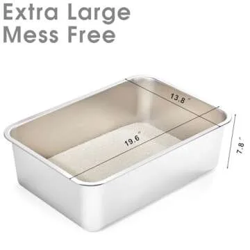 Yangbaga Stainless Steel Litter Box for Cat and Rabbit, Odor Control Litter Pan, Non Stick, Easy to Clean, Rust Proof, Large Size with High Sides and Non Slip Rubber Feets