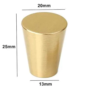 YANGQIHOME Pack of 10, Gold Brass Cabinet Knobs, 0.8 inch Diameter, Brushed Dresser Drawer Knobs Pull Handle for Bath Kitchen Cabinetry (Cone)