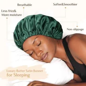 Show more Discover the secret to beautiful, healthy hair with the YANIBEST Double Layer Satin Bonnet. This exquisite sleep essential is meticulously crafted from soft, breathable silky satin that ensures reduced hair friction while you sleep, promoting smoother hair and preventing frizz. Its luxurious fabric not only wraps your hair in comfort but also locks in moisture throughout the night, transforming your morning routine with tangle-free, gorgeous locks. Whether you have curly, natural, or straight hair, this bonnet is the perfect partner for maintaining your hair’s vitality.