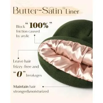 YANIBEST Womens Satin Lined Knit Beanie Hat Acrylic Winter Hats for Women Men Silk Lining Soft Slouchy Warm Cuffed Beanie Hat Pine Green