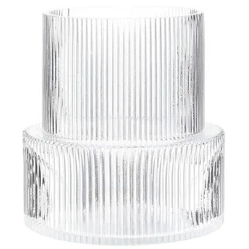 YANWE1 Glass Vase, Ribbed Vase, Flower Vase, Fluted Glass Vase, Clear Vase, Ribbed Glass Vase for Flowers, Modern Vase for Living Room, Dining Table, Entryway, Shelf, Wedding, Office, 7.5 Inches