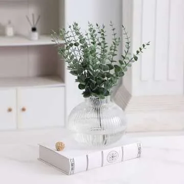 YANWE1 Round Glass Vase, Flower Vase for Bouquet, Ribbed Glass Vase, Fluted Vase, Clear Glass Vase for Tulips, Modern Glass Vase for Living Room, Office, Coffee Table, Shelf, Wedding, 6 Inches