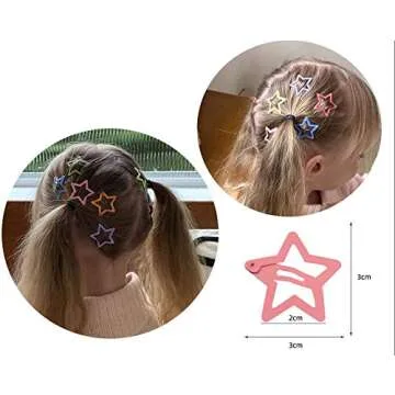 Show moreIntroducing the **YAOKUA Star Hair Clips for Girls** - a delightful collection of 50 beautifully designed metal barrettes that add a touch of charm to any hairstyle. Crafted with quality materials, these star-shaped hair clips come in an array of vibrant colors that are perfect for children, teenagers, and women alike. Each clip features a friendly candy color paint finish, ensuring not only a stylish look but also a strong hold that keeps your hair in place without slipping. Whether you're dressing up for a party, festival, or simply want to add some flair to your everyday style, these clips are the ideal accessory.