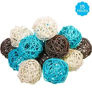 Yaomiao 15 Pieces Wicker Rattan Balls Decorative Orbs Vase Fillers for Craft, Party, Valentine's Day, Wedding Table Decoration, Aromatherapy Accessories, 1.8 Inch(Light-Blue White Gray)