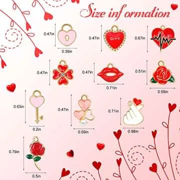 Show moreIntroducing the Yaomiao 80 Pcs Metal Heart Charms - the perfect addition to your jewelry-making arsenal! This stunning assortment features beautifully crafted red rose gold-plated charms, including classic heart shapes, heart-shaped keys, locks, and more, providing a delightful variety for every DIY enthusiast. The set comprises 80 pieces across 10 unique styles, with each style available in 10 pieces, ensuring you have plenty to express your creativity. Housed in a convenient plastic storage box, these charms are easy to take along wherever your crafting takes you. Plus, with their high-quality alloy composition, these charms are not only visually appealing but also durable and skin-friendly, making them the ideal choice for all your crafting needs.