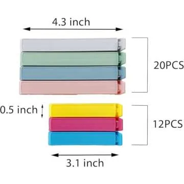 Each set comes with a practical combination of sizes: a total of 32 pieces, including 20 clips measuring 4.3 inches and 12 clips at 3.1 inches. This variety provides you with the flexibility you need—whether for snack bags, pantry items, or even piping bags for your culinary creations.
